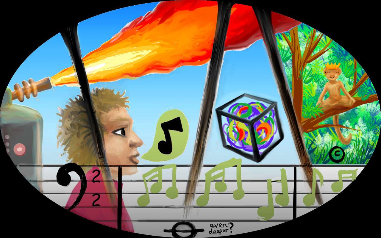 The engine vibrates a little, a deep tone inaudible to me but palpable. I sing & play music along with it. My prototype only has a throttle for volume and a lever elevating the muzzle; I adjust the pitch of the vibration using these.