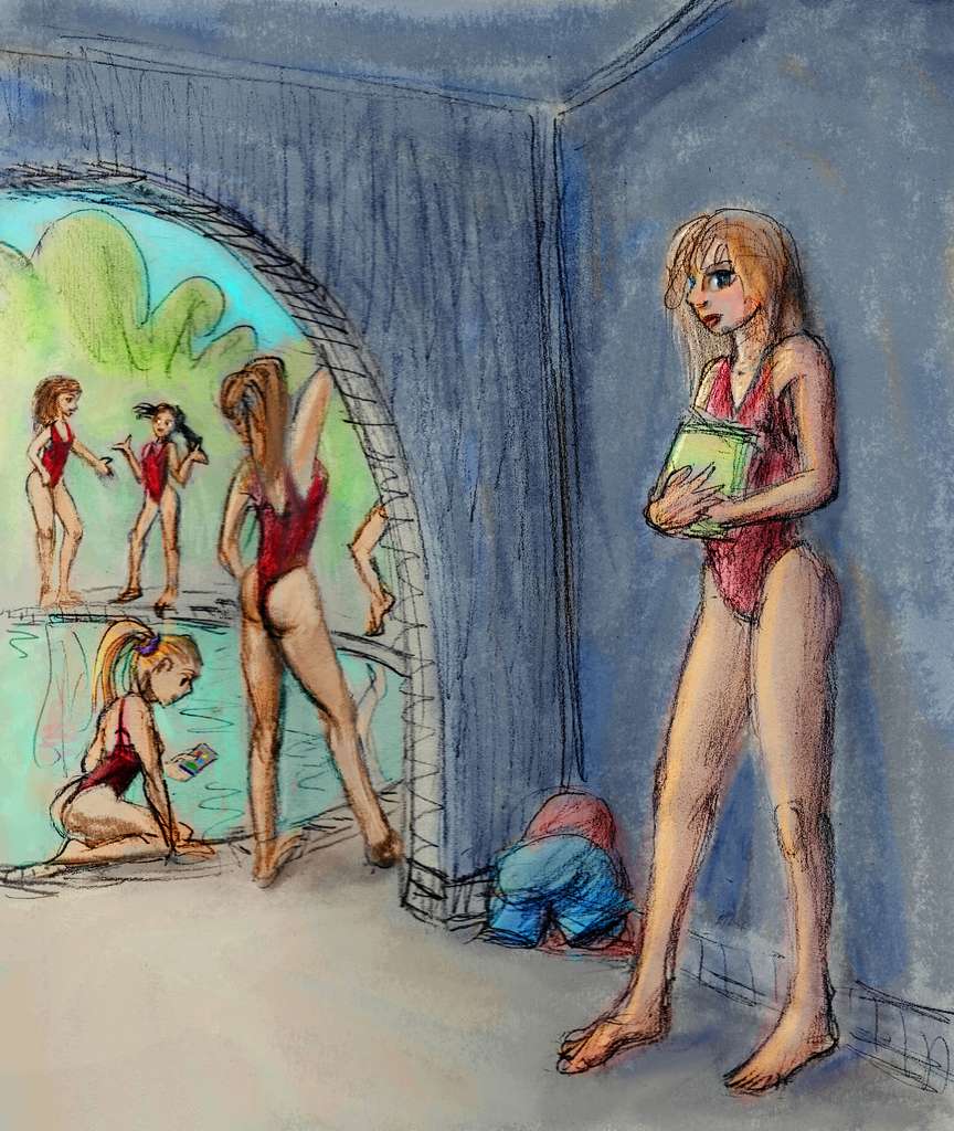 A high school swim meet. I'm in a synchronized swim team. I should have got my swimsuit on minutes ago; the rest of our team is already gathering by the pool. But I'm delayed, distracted--I didn't get a locker, and need a place to hide my gear. Find a big, well-lit but empty & unused basement. Stash my stuff there; unlikely to be stolen or even noticed.
