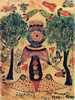 SUNRISE SACRIFICE: by Minnie Evans, dreamed c.1901, painted c.1947 A crowned woman with an ax and a torch carries out a mysterious sacrifice. Is this Helen of Troy, or Hecuba? |