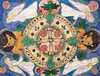 LIONS: by Minnie Evans, Nov. 1968; dream painting Mysterious. Evans tiled it simply "A Dream". Does this mandala depict a feast-table seen from above, or the whole world? And... twin Aslans? |