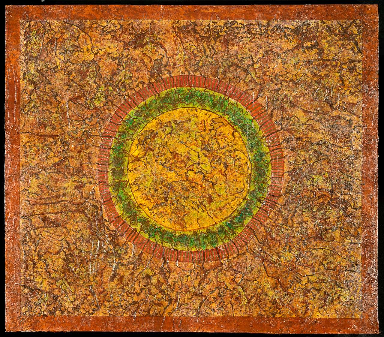 SUN AND EARTH MANDALA (enlarge) Acrylic on muslin and doorskin board, 32 x 36", November 2017 © by Henry Sultan