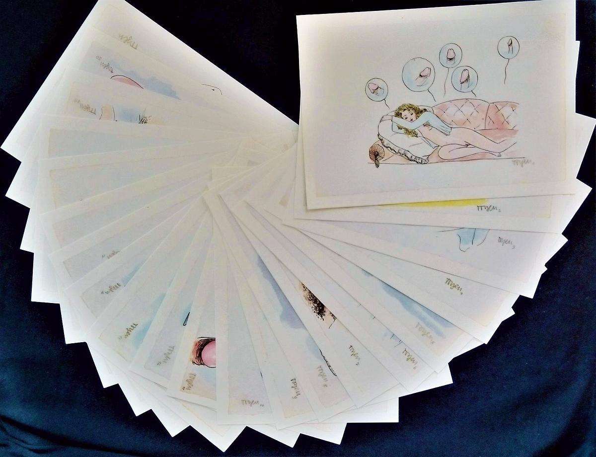 Is this Toyen? Only one side. Her nondream erotica's full of penises, yes, but vaginas, lesbianism, and bestiality too; she seems to have been pretty broadly pansexual. The one constant is they all seem to be having fun. That in itself is pretty revolutionary, then and now.